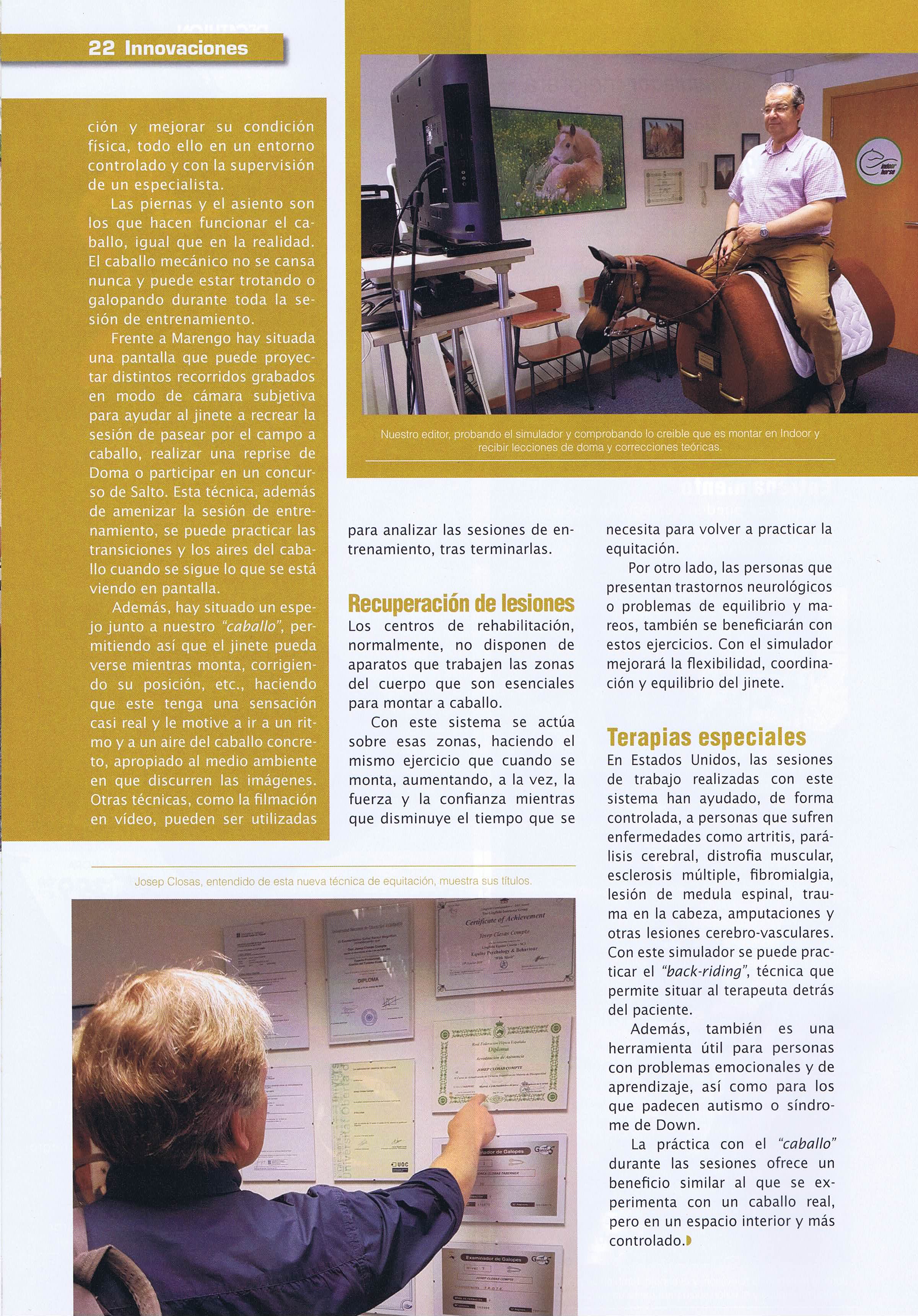 Lean en el número 88 de la revista Galope trofeo caballo, correspondiente a los meses de septiembre y octubre, un extenso reportaje sobre "Marengo", el caballo mecánico de IndoorHorse.