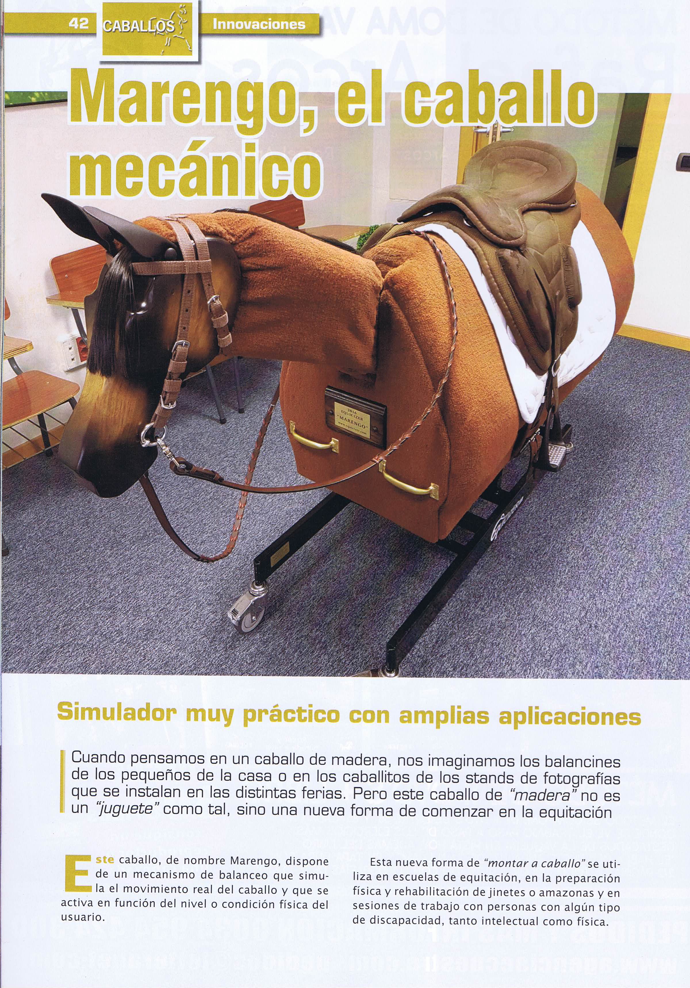 Lean en el número 68 de la revista Trofeo a la Vaquera, correspondiente a los meses de agosto y septiembre, un extenso reportaje sobre "Marengo", el caballo mecánico de IndoorHorse.